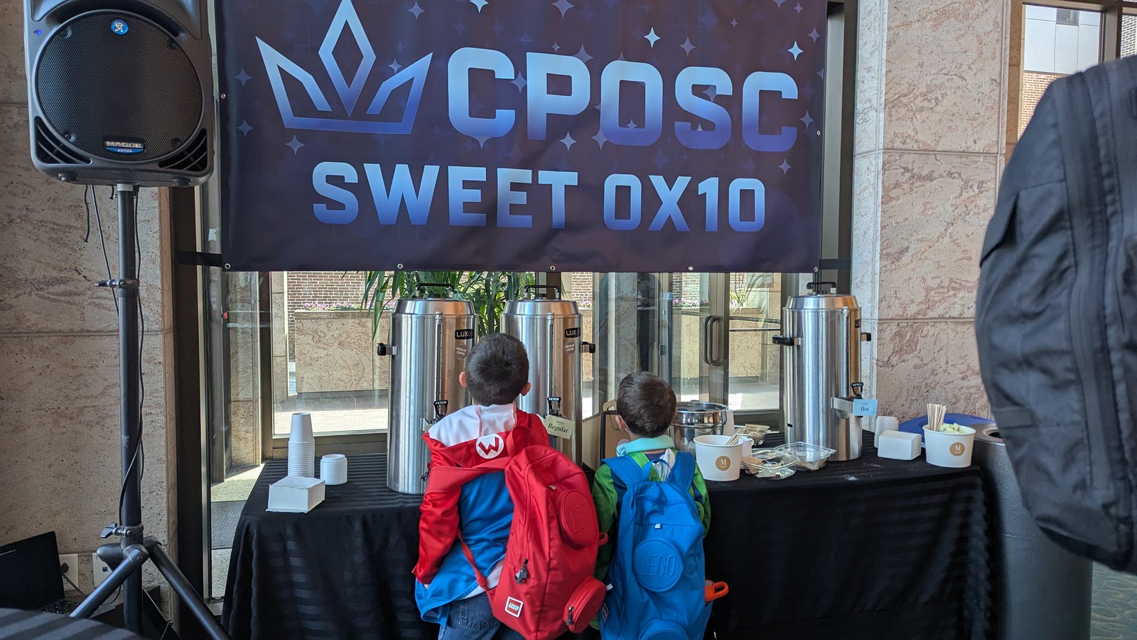 This past Saturday MJ and I piled the boys into the van for a 90 minute drive out to Lancaster for the Central Pennsylvania Open Source Conference (CPOSC), which was celebrating it’s 16th annual-ish event (hence, 0x10). It was my fourth time attending this event, having been in 2009 before I moved out to California, and then again in 2023 and 2024, when our spring break visits to Philadelphia lined up with the event. The decision to bring the boys this time was carefully considered, at ages 5 and 7 they aren’t really old enough to appreciate a conference aimed at adults, but with both MJ and I there, and their backpacks loaded with devices, we figured the bases were covered emergency exit-wise.