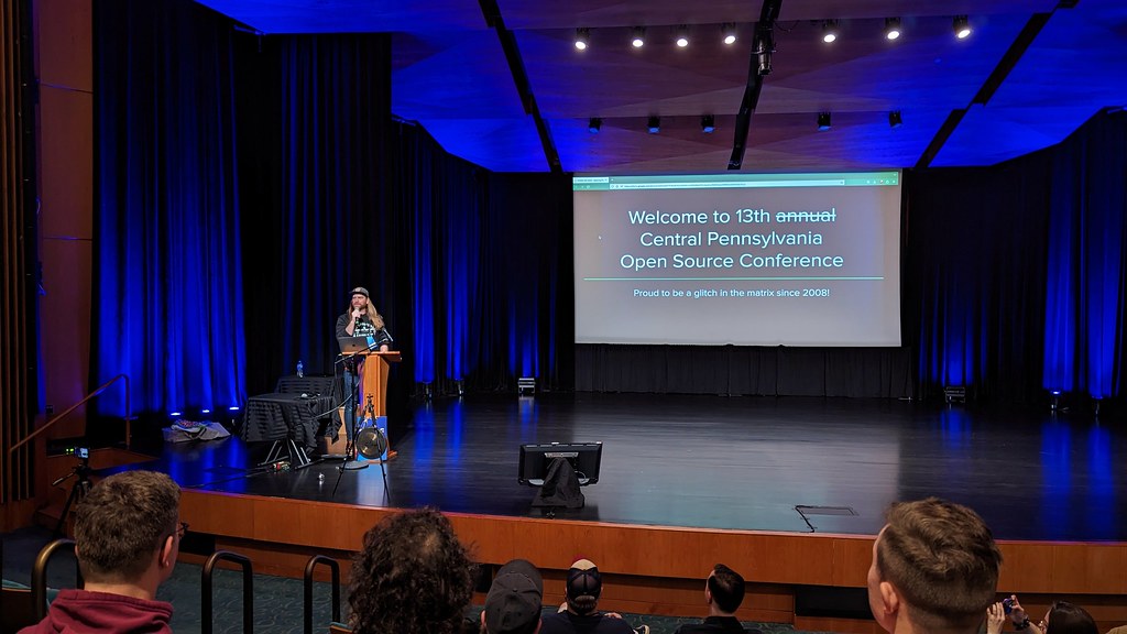 I moved to California just a few months later, during one of the snowiest winters Philadelphia had seen in years. I was aware of CPOSC continuing over the years, but I could never sync up my visits back with the conference. This year serendipity stepped in. I just happened to discover via a chat in #plug a week and a half prior that CPOSC was happening during our visit to Philadelphia. Even better, they were still accepting applications for lightning talks. I swiftly submitted something (which was accepted!) and started making arrangements to attend. It was on a Saturday, but thankfully MJ had a friend in town who wanted time with the boys, so it wasn’t a big deal for me to sneak out for a day.